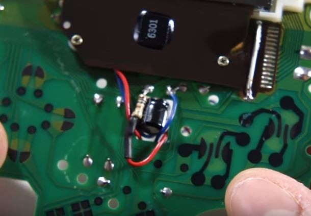 - Solder the resistor to the RED wire of the backlight. If the kit didn't come with the wires pre-soldered to the screen, do that now. Red goes on the left, black goes on the right.